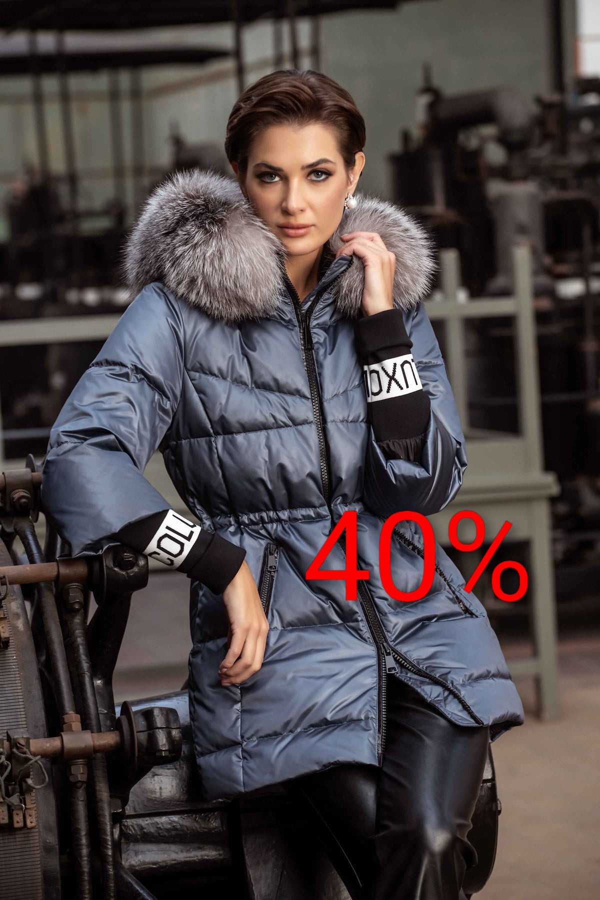Su lujoso pelo de zorro en la capucha y su relleno de plumas de pato y plumón crean un equilibrio entre elegancia y comodidad térmica.