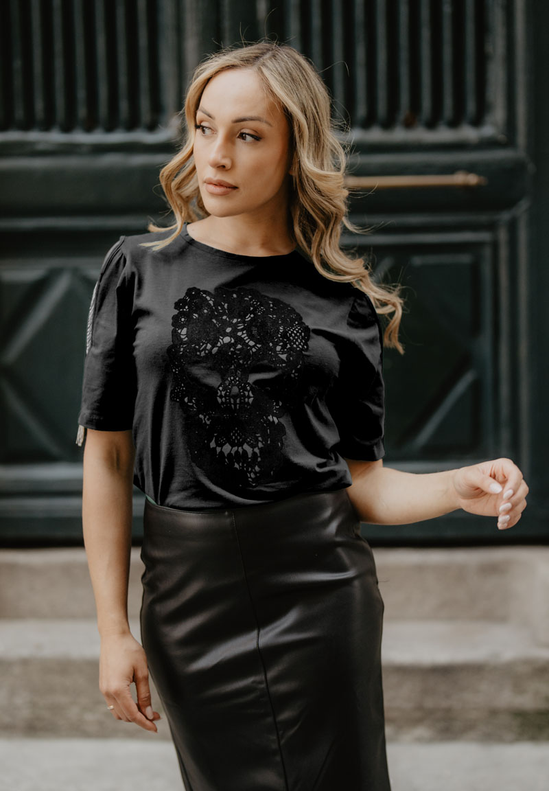 Camiseta negra Calavera Encaje
