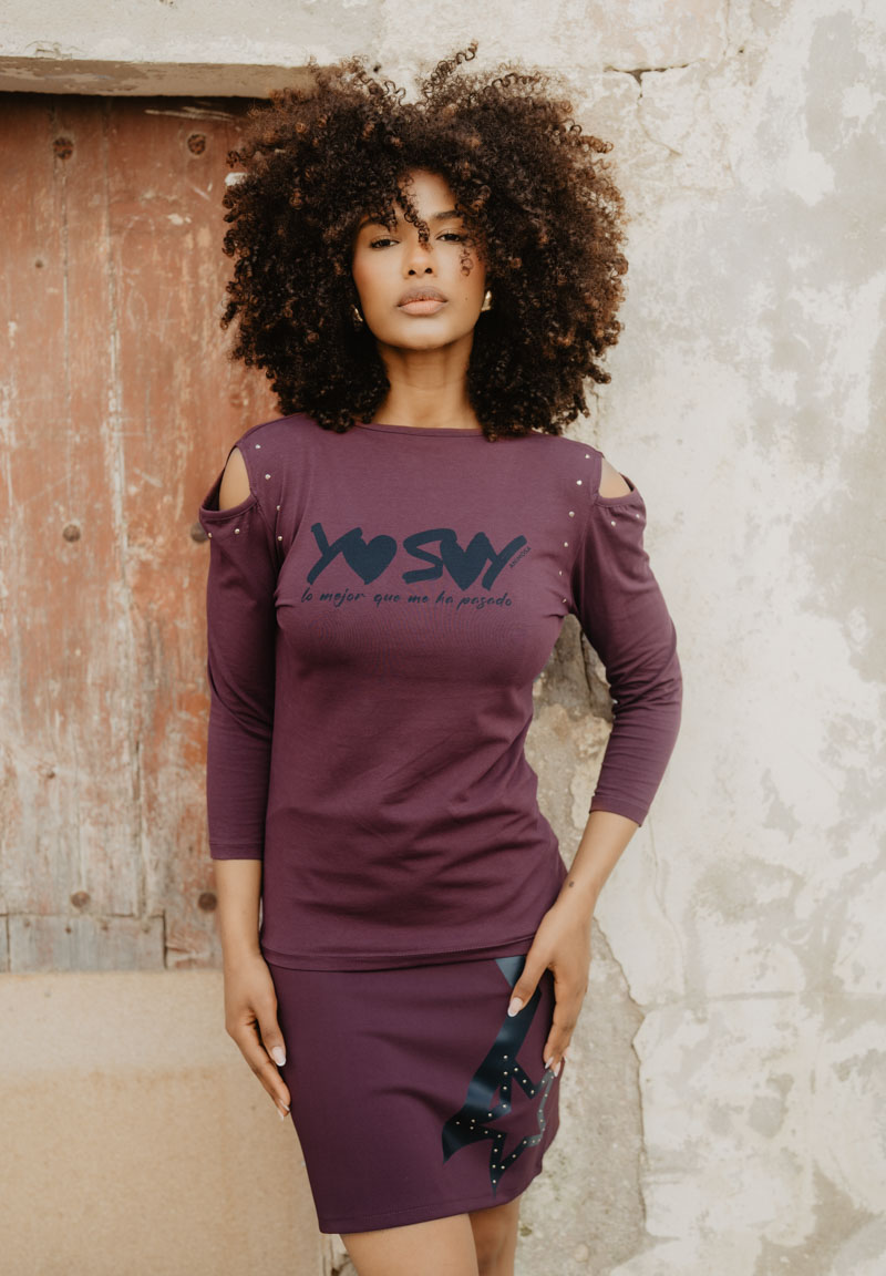 Camiseta cut out con estrella superpuesta en la espalda y el mensaje: «Yo soy lo mejor que me ha pasado».