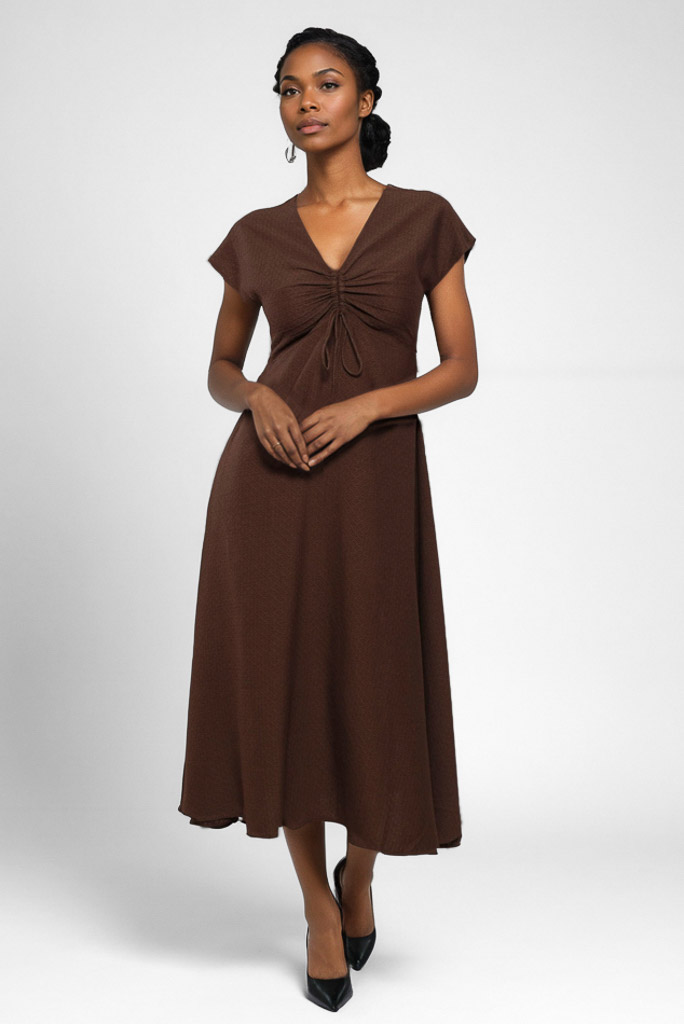 Escote en pico largura midi .